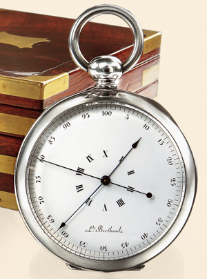 ![]() (click to enlarge) Louis Berthoud #26 c.1793. Early decimal pocket Chronometer, featuring all decimal chapters for hours minutes and seconds. (costum image) |